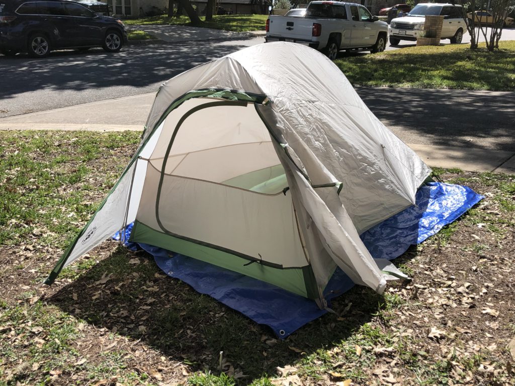 Those of you that know me pretty well know that I’m a city girl so for me to have put this tent up in less than 3 days (just kidding) is a minor miracle! the tent part is easy because it’s self -contained but the “fly” was a challenge for me. Thank goodness for my neighbor because she helped me figure out which lines to put the stakes into (it was NOT intuitive). And then of course, putting the gear back into the one bag did NOT happen but that could be good or bad – it might be that two containers will allow me more space in my cart or it might not. When Chuck is done drying (I put another coat of waterproof spray on it) i will check it out. it’s all going to be live and learn. but it’s not second nature for me yet. i hope it will soon become second nature…sigh..but i am glad i went with the two person tent (two of me maybe but certainly not two people of normal height) for multiple reasons.